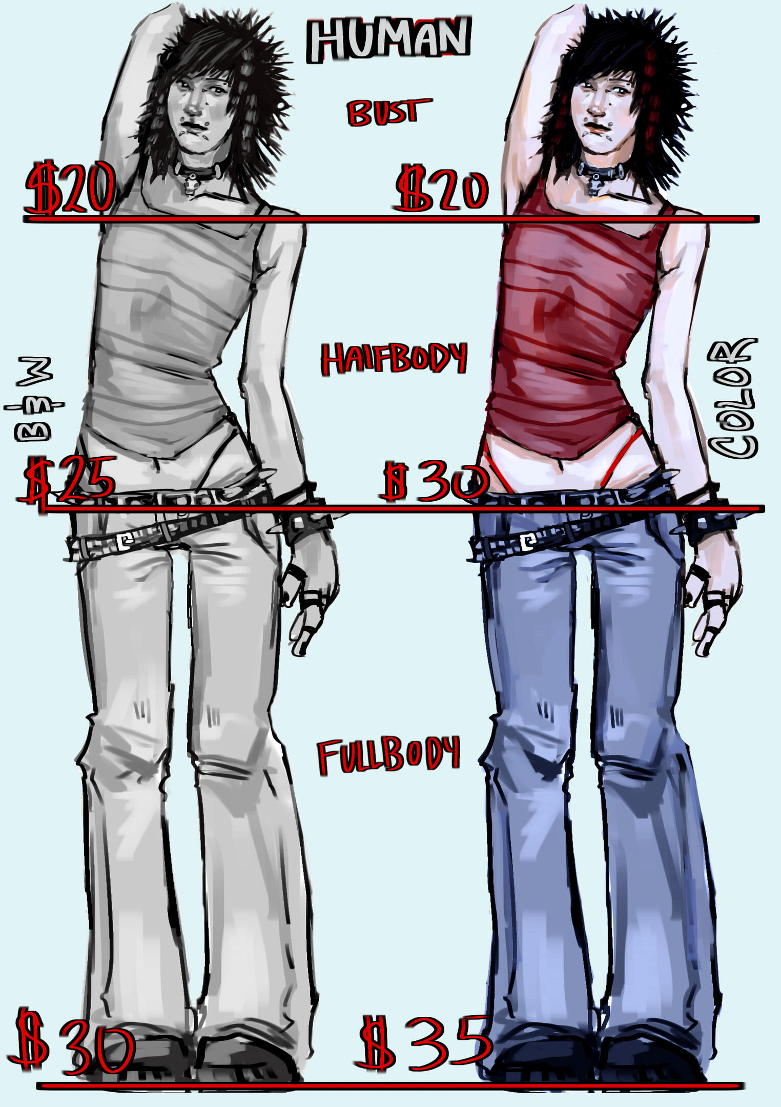 all prices are a ! starting !price, depending on time and detail price may increase by MAX $10-will not draw 🚫-